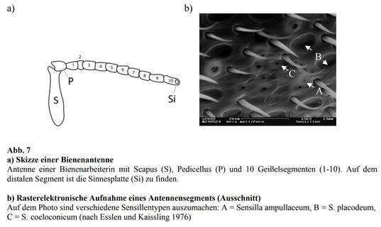 In der Dissertation von Brigitte Bujok (2005) wird die "Thermoregulation im Brutbereich der Honigbiene Apis mellifera carnica" untersucht und welchen entscheidenden Einfluss die Fühler dabei haben. In einem Experiment wurden bei einem Testvolk das erste Glied der Fühler der Bienen entfernt. Genau dort sitzt der Temperaturfühler.